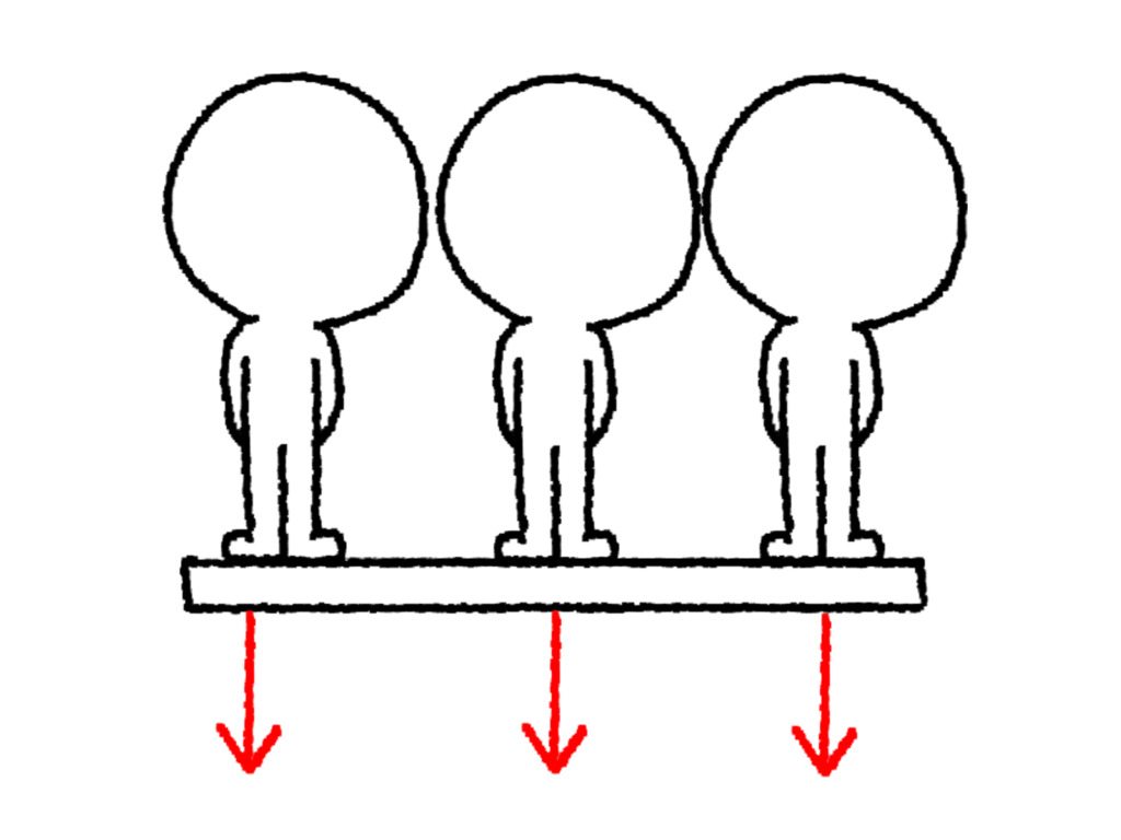 しかし押せない状態だと、体は重力に負けて下へ落ちていき、姿勢は崩れてしまいます。